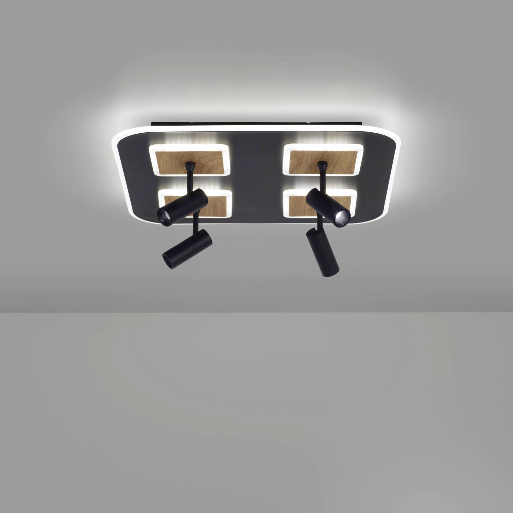 Aplique de Techo Deco Envy Negro y Madera 45w/12w Luz Dinamica Calida/Neutra/Fria