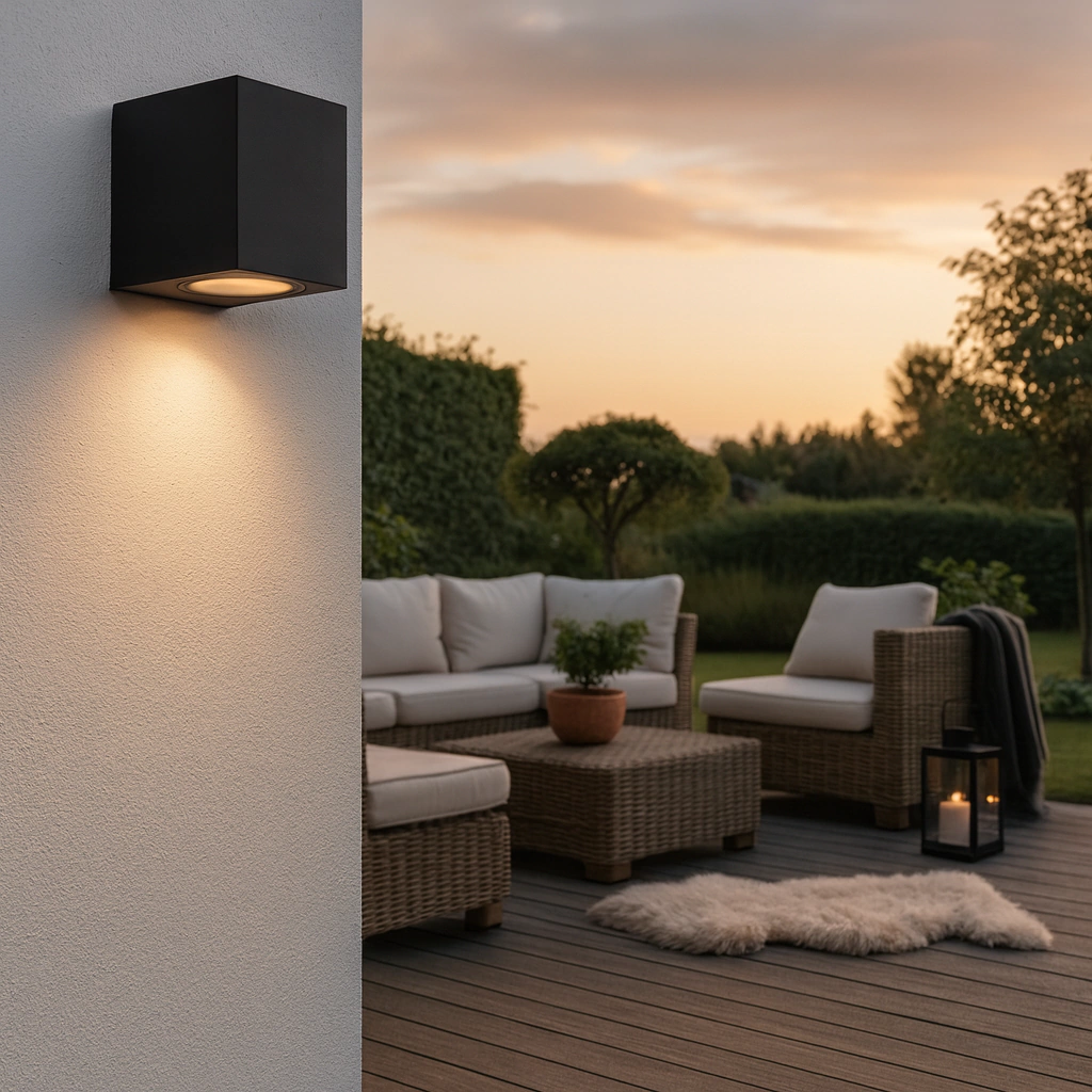 Aplique moderno y compacto, ideal para iluminar accesos, galerías, balcones o fachadas. Su diseño minimalista en aluminio y vidrio templado garantiza resistencia, buena disipación y un estilo sutil que se integra a cualquier exterior. Funciona con lámpara dicroica GU10, permitiendo elegir la temperatura de luz que prefieras.