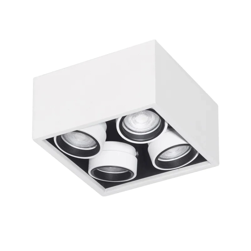 ANTON 4 BLANCO. Aplique. Material: Aluminio y acero. Dicroica x 4 (NO INCLUIDAS). Color: Blanco. Largo: 165 mm. Ancho: 165 mm. Profundidad: 86 mm. Con movimiento cardánico