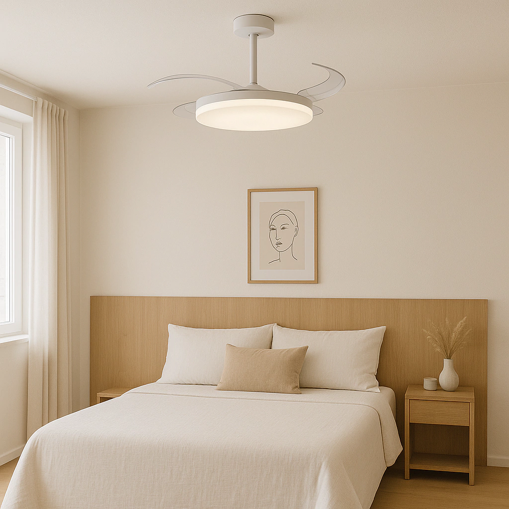Un diseño sofisticado que combina ventilación silenciosa e iluminación inteligente en un mismo producto. El ventilador retráctil BIXOR BX05B-BL se mimetiza como una luminaria decorativa cuando las aspas están cerradas y despliega toda su potencia con solo encenderlo. Ideal para quienes buscan confort, estética y tecnología en un solo artefacto.